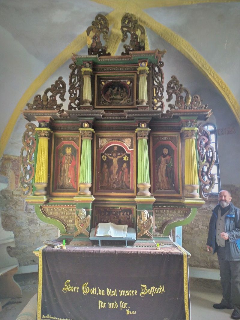 Saturday morning I met Johannes in the parking of a supermarket in Sighisoara where he supplied with snacks provisions for volunteers and we embarked in his old minivan heading to Ormenis which is one hour of driving away from Sighisoara, the town where we live in. The driving time was a good opportunity for me to learn more about the life of a Saxon priest serving around 10 different communities scattered in villages of Southern Transylvania sometimes 80 km appart and none of them with more than 30 members. He is priest for some of the last Saxons of Transylvania who refused to emigrate after the collapse of Communism in this part of the world. They are somehow closing a 800 years chapter of history that we are blessed to be contemporary with.
